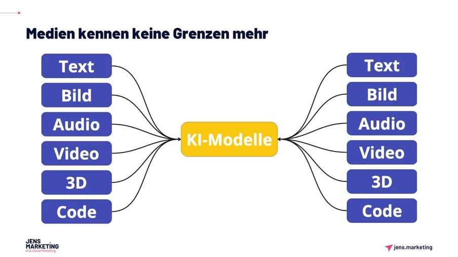Besonders die generative KI wird die Medienwelt und auch unser Denken – gerade auch im Marketing - stark beeinflussen. Mediensilos werden übergreifend gedacht: Also beispielsweise kann aus einem Text ohne Probleme ein Bild, Code, 3D oder ein Audioformat erstellt werden. Dies schafft auch wieder neue Möglichkeiten und Ideen, um damit zu arbeiten. Selbst die Verarbeitung oder Aufnahme von Informationen wird sich verändern. Gerade der Bereich der generativen KI wird dort sein, wo wir sowieso schon arbeiten: Die KI wird in den Dokumenten und Tools integriert, die unsere Alltagswerkzeuge sind und die Bedienung der KI wird ein Lernprozess für uns alle sein. Genauso wird sich die Google-Suche in den nächsten Monaten ändern: Auf deine Suchanfrage wirst du dann künftig dank Search Generative Experience eine relativ umfangreiche Antwort erhalten. Die Richtung ist klar Richtung Antwortmaschine statt Suchmaschine. Genauso arbeitet Meta an einer KI, die später in Whatsapp oder Instagram verfügbar sein wird. Integrierte KI-Assistenten werden wir also bald so gut wie überall dort finden, wo wir sowieso sind.