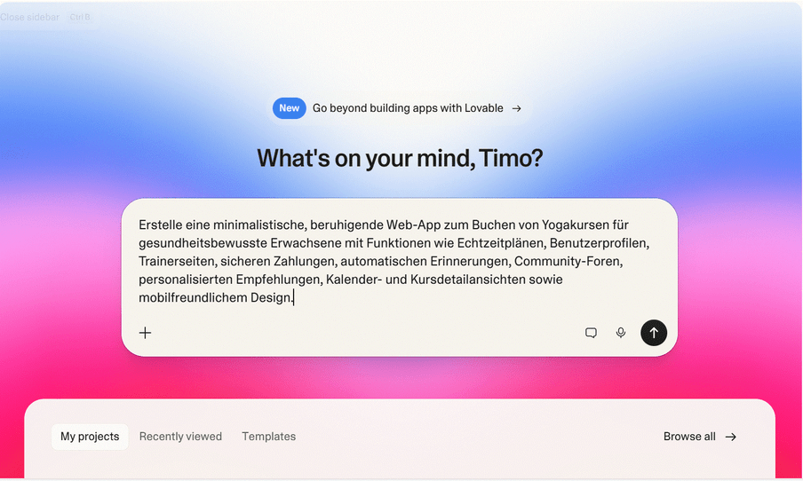 Das Konzept hat besonders bei Startups und Gründer:innen eingeschlagen – weil es die Zeit von der Idee zum ersten Prototypen von Wochen auf Stunden reduziert. Lovable ist eines der bekanntesten Tools, das diesen Ansatz umsetzt.