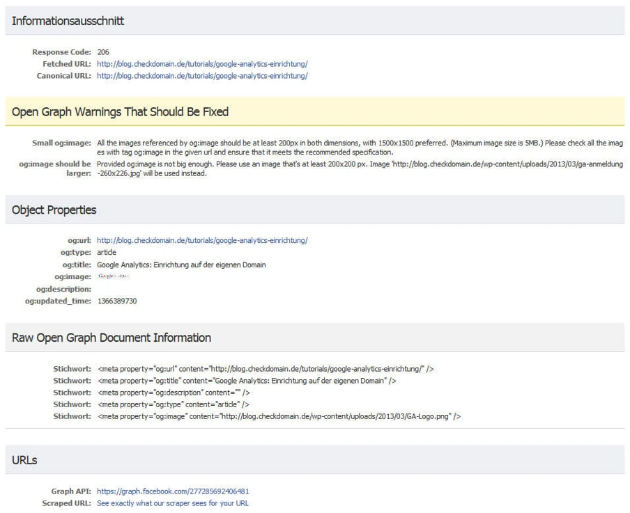 (wer will schon warten) oder Ihr nutzt den Debugger von Facebook, um den Cache sofort zu aktualisieren.